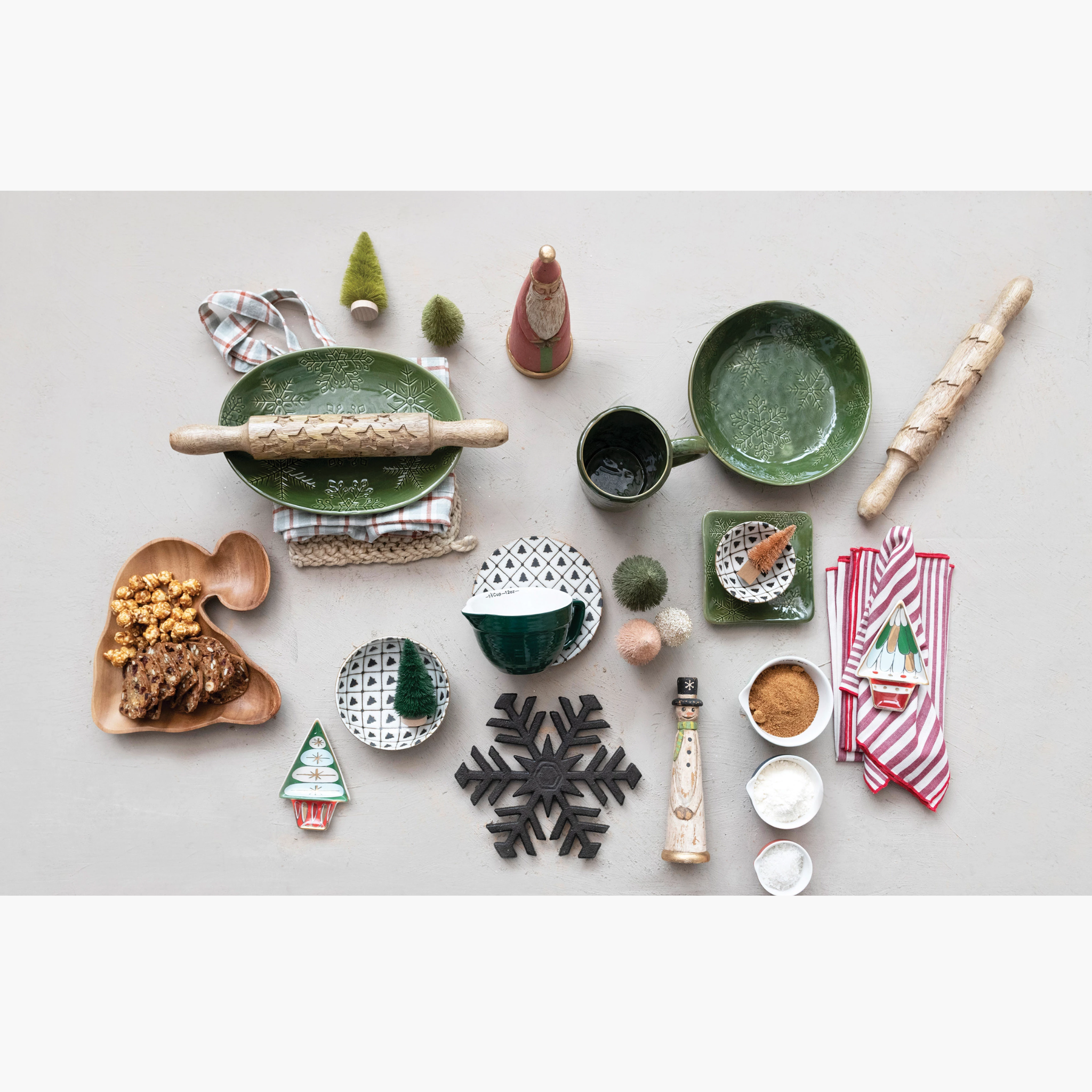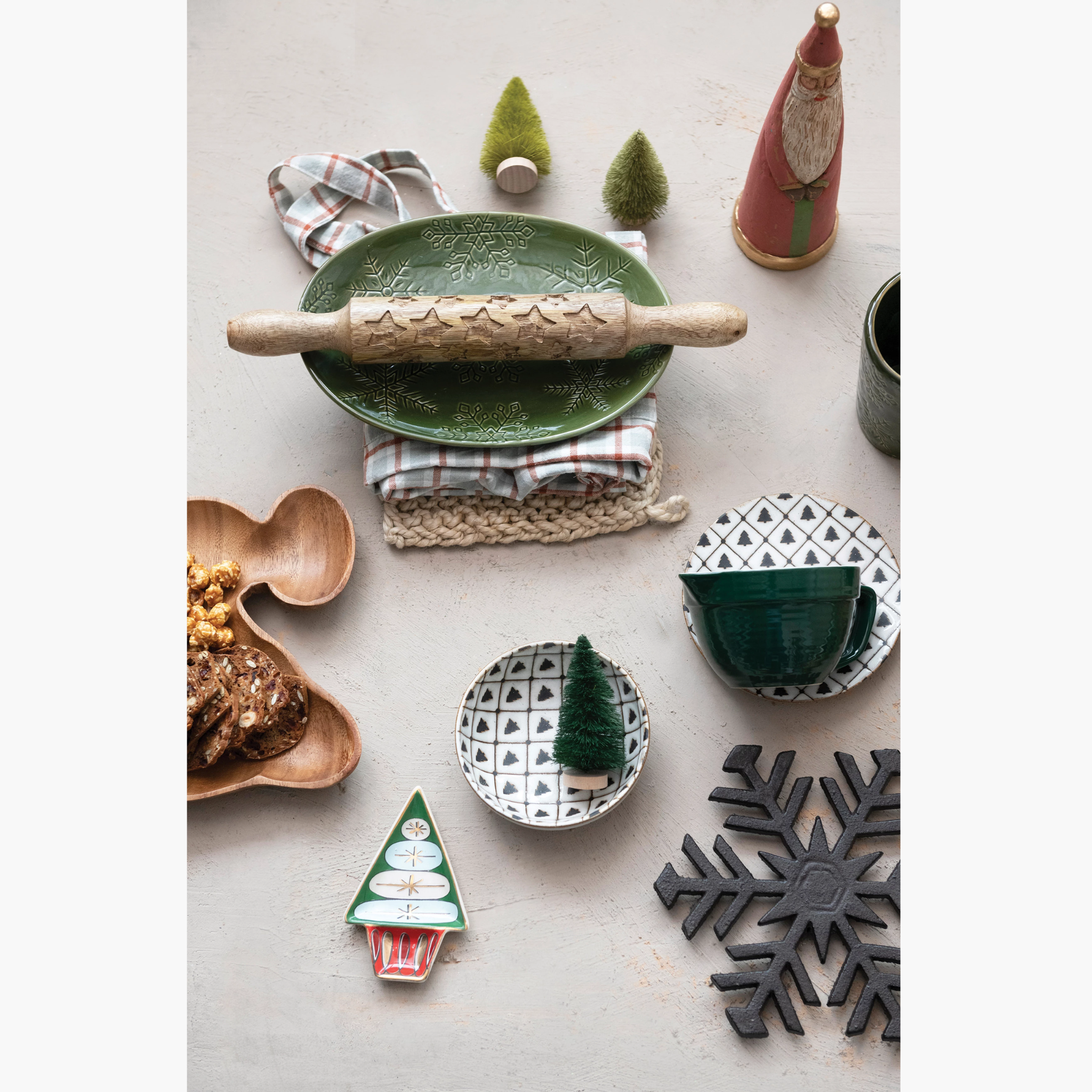 This charming stoneware bowl measures 5" across and stands 1-1/2" tall, featuring a delightful tree design in striking white and black with a reactive glaze finish. Perfect for adding a touch of whimsy to your table!