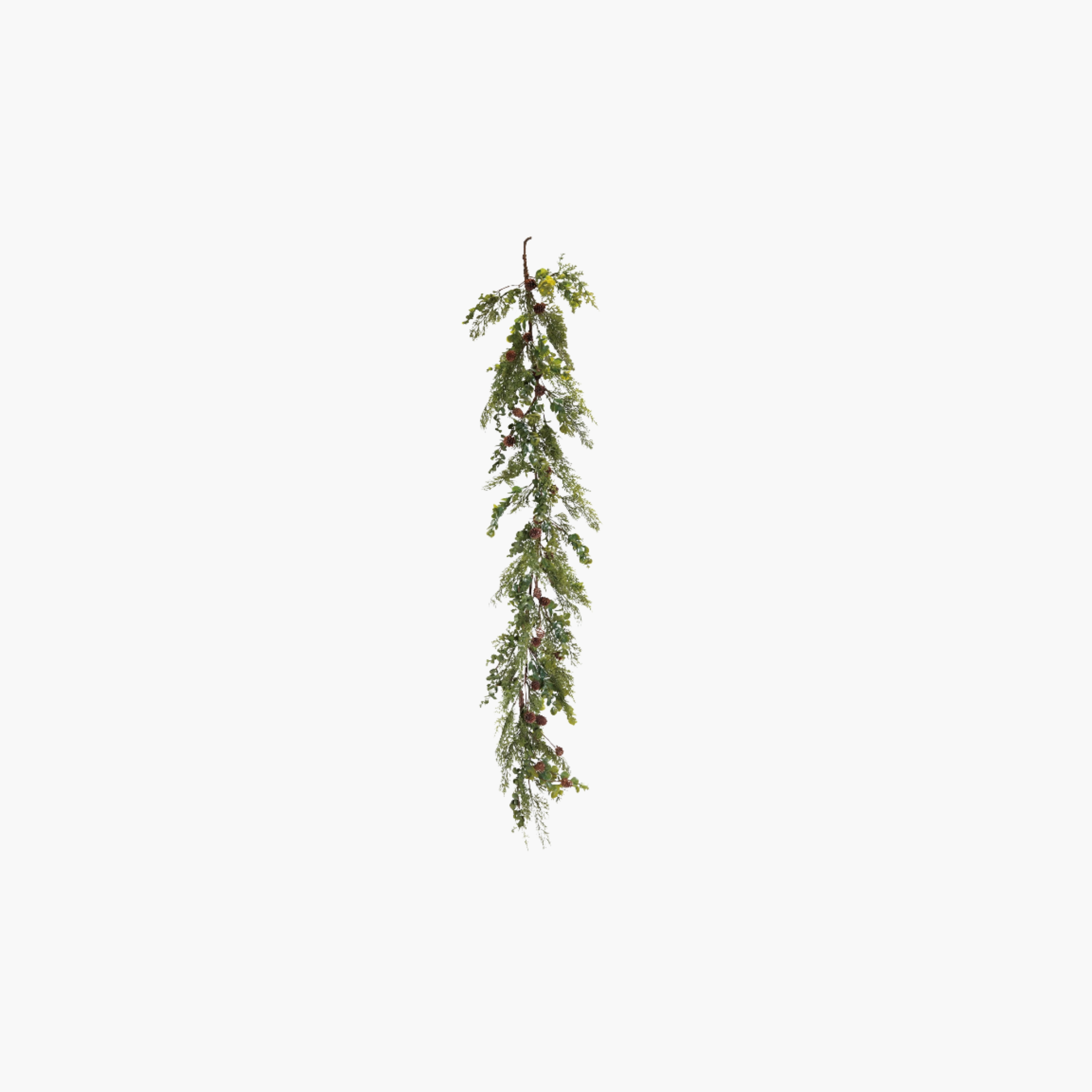 Bring the forest indoors with this charming 60-inch garland that captures all the cozy vibes of a woodland retreat. Crafted from lifelike faux cedar and eucalyptus, it's adorned with rustic pinecones for that authentic, just-picked-from-nature feel. At 8 inches tall, it's the perfect size to drape along mantels, doorways, or stair railings without overwhelming your space. No watering required—just endless seasonal charm that lasts year after year!