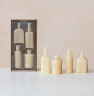 This unscented embossed bottle candle adds elegance and charm to your home, made with safe and long-lasting paraffin wax. Its round bottle-like design features an embossed pattern in cream. 2.75 inches in diameter and 7.5 inches in height, it burns for approximately 72 hours.