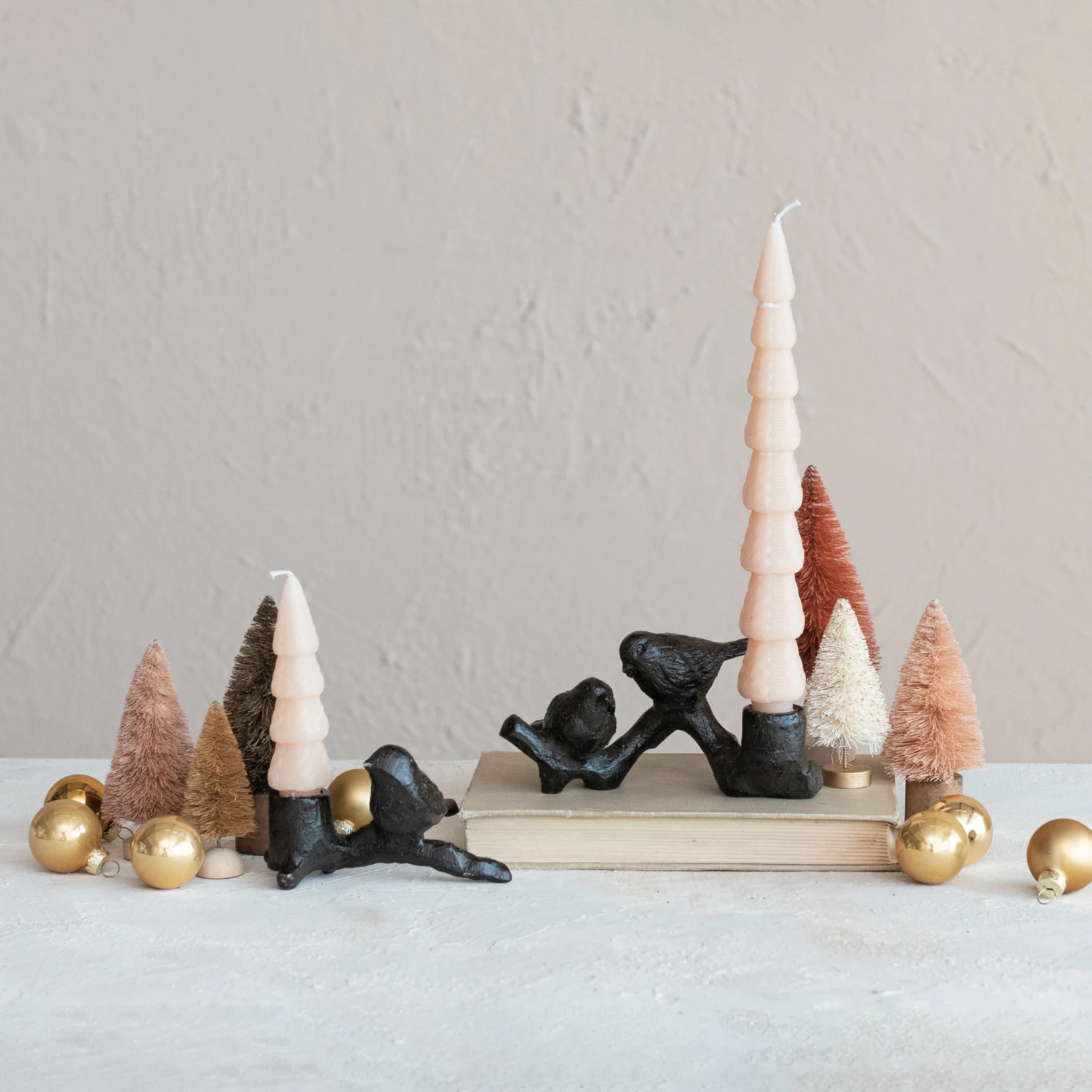 Cast Iron Taper Holder w/ Bird on Branch, Black/Brown