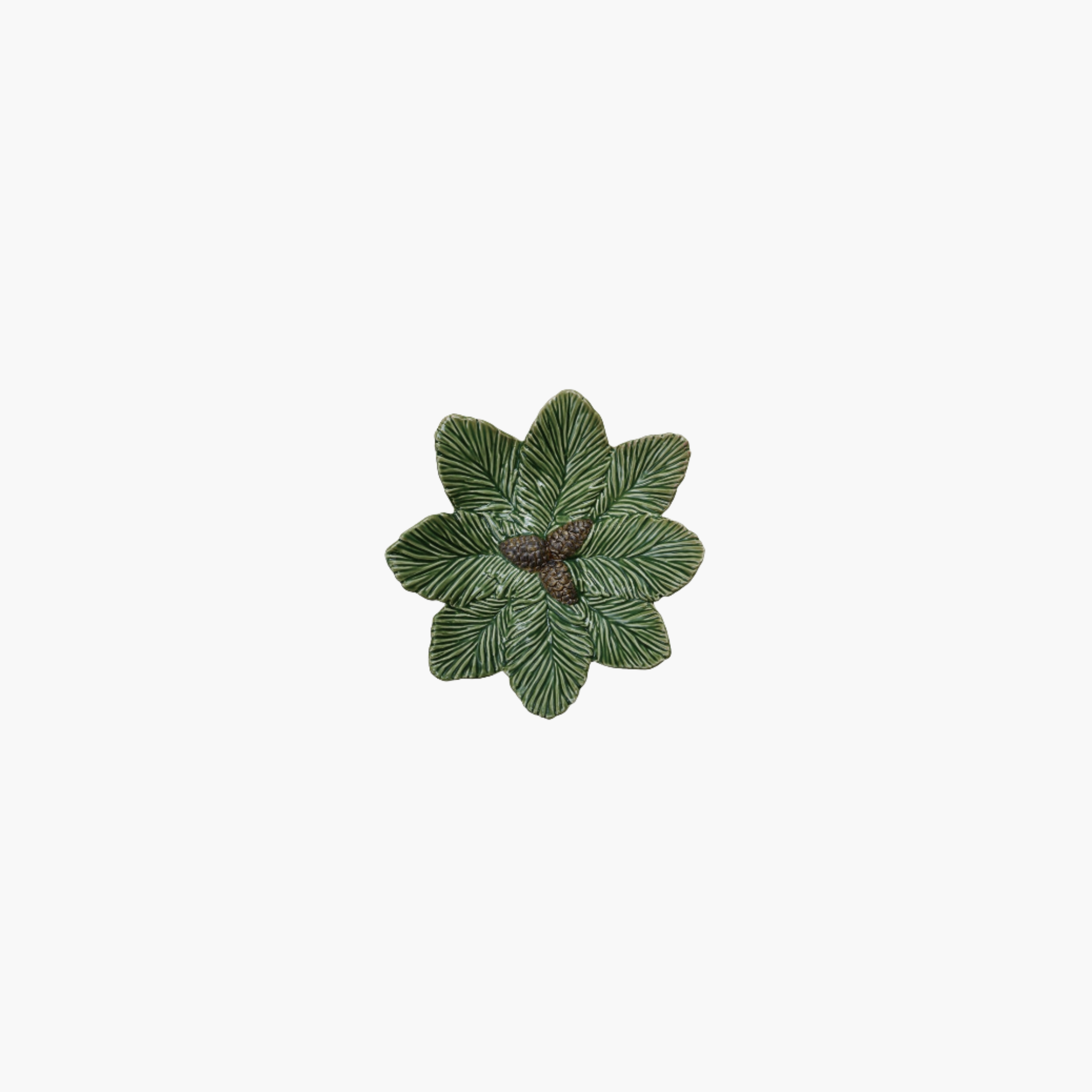Bring a touch of woodland whimsy to your table with this charming ceramic plate shaped like a graceful pine bough. Adorned with realistic pinecones in rich green and warm brown tones, it's perfect for serving appetizers, displaying seasonal décor, or adding a nature-inspired accent to your kitchen. A delightful piece that celebrates the beauty of the forest.