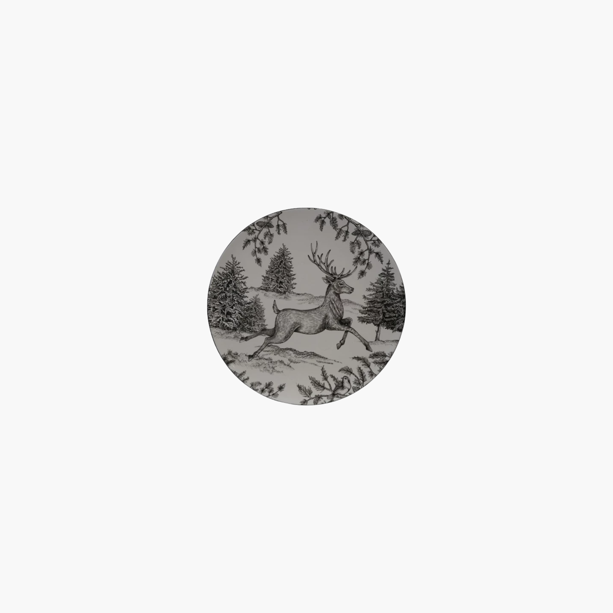 This delightful 12-1/4" ceramic platter captures the magic of the forest with an enchanting deer design set against a sophisticated black and cream backdrop. The playful colored edge trim adds a spirited finishing touch that's sure to spark smiles at the dinner table. Whether you're serving up snacks or showcasing your favorite seasonal spreads, this charming piece brings woodland wonder to every occasion.