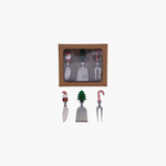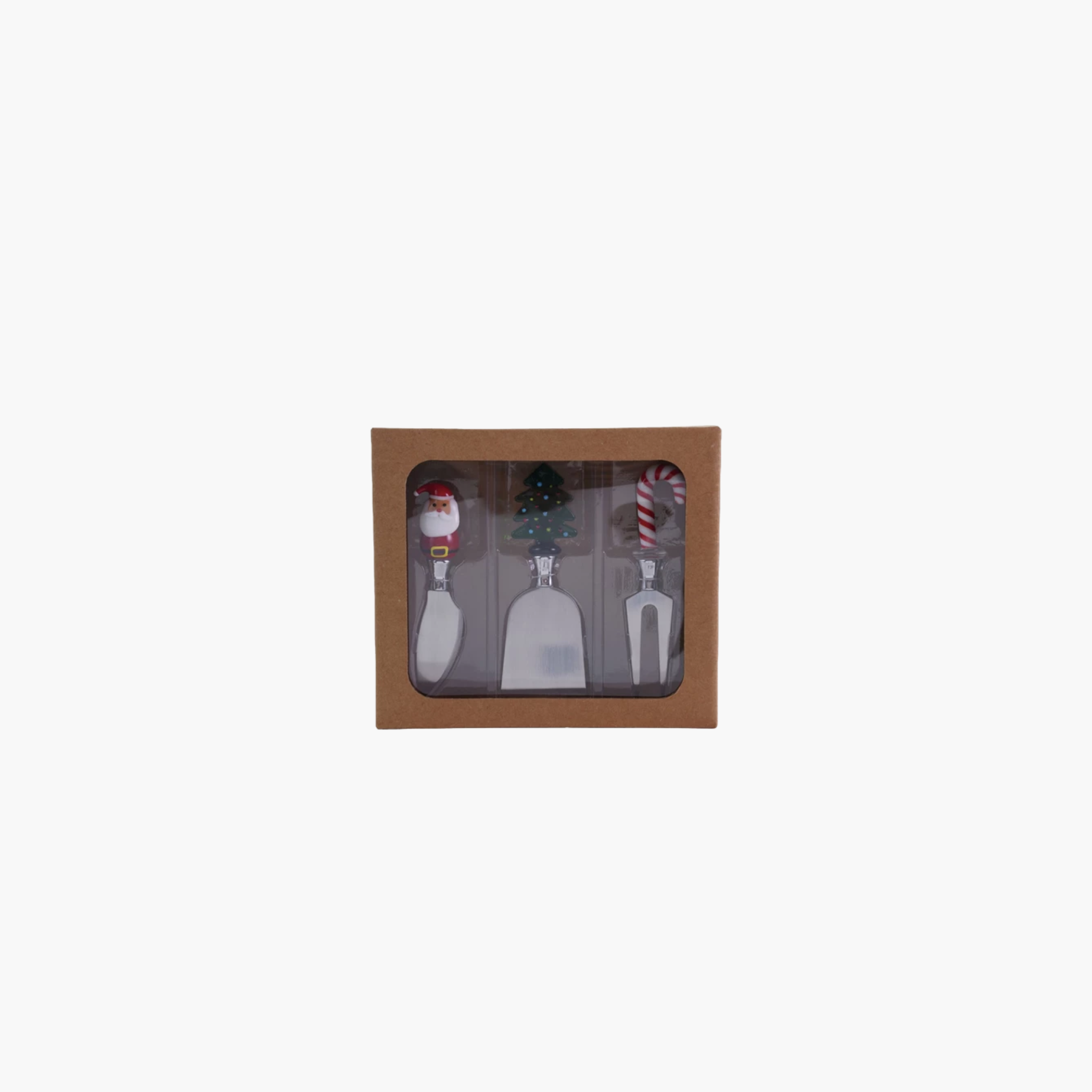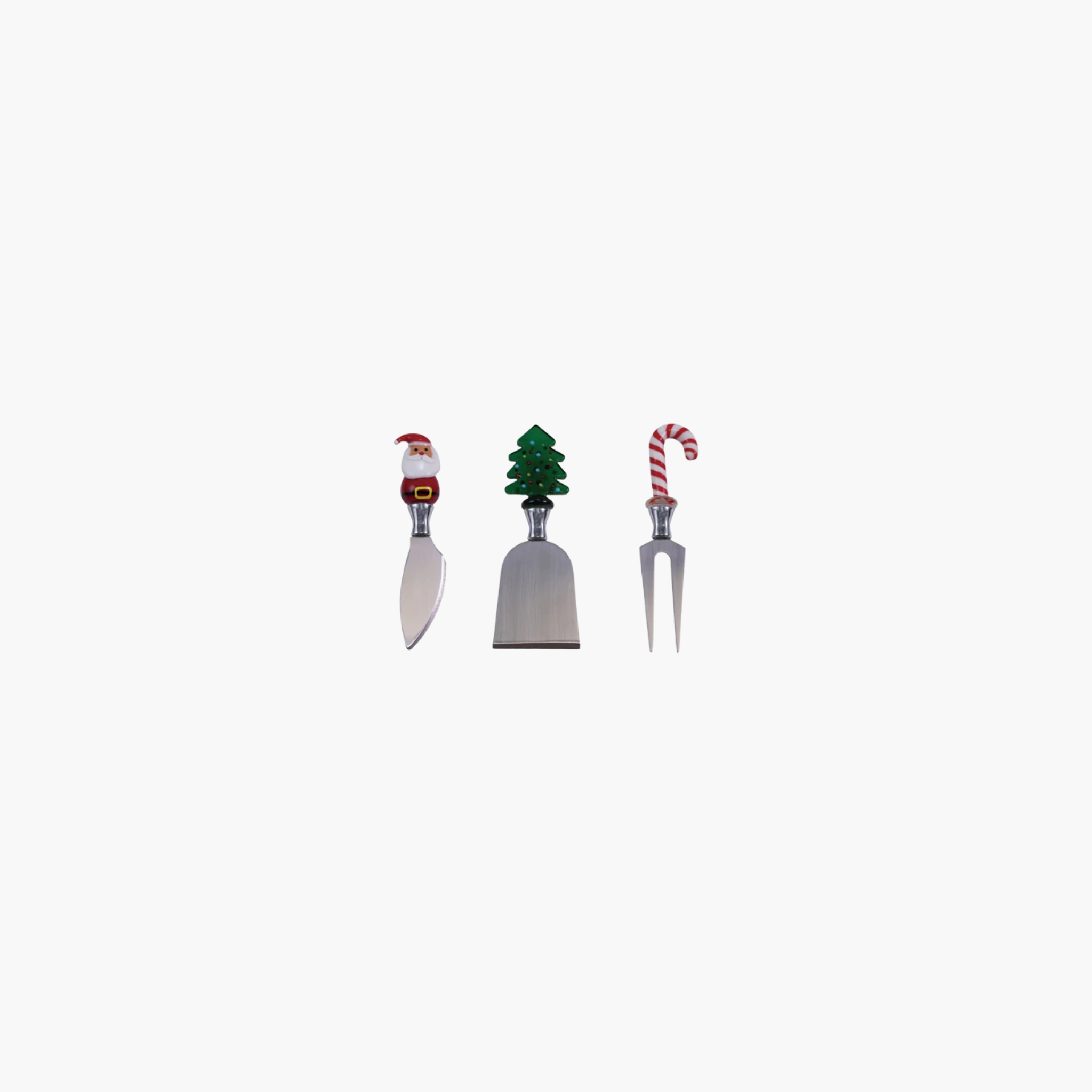 This boxed set features three 7-1/2" stainless steel cheese knives, each topped with a colorful, hand-blown glass handle showcasing festive holiday icons. Perfect for adding a cheerful touch to your cheese platter!