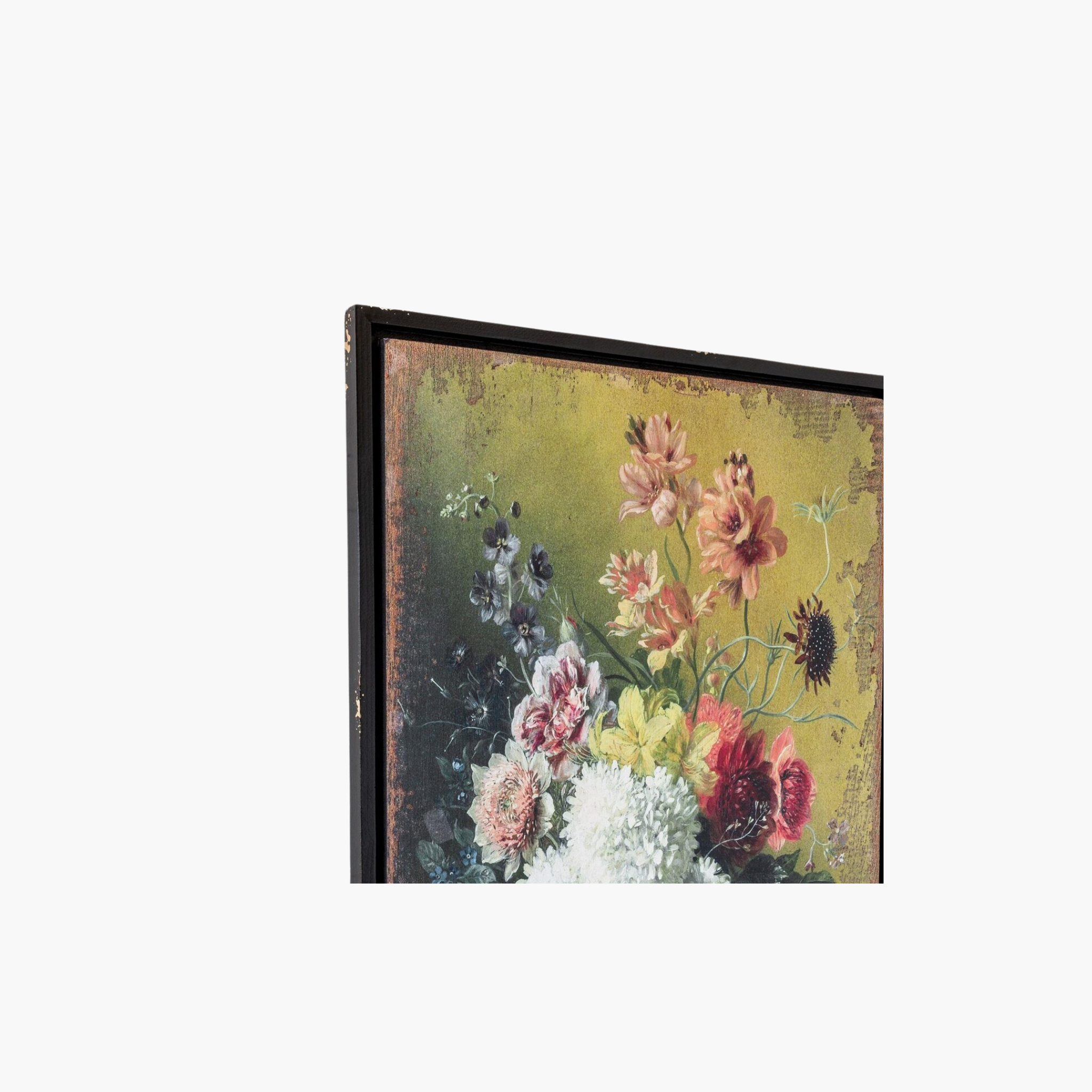Step into a Parisian flea market with these stunning wood prints of colorful flower bouquets. The distressed black frames add a touch of vintage charm to any space. Measuring L27.5" x H39.25", they make a bold statement on any wall.
