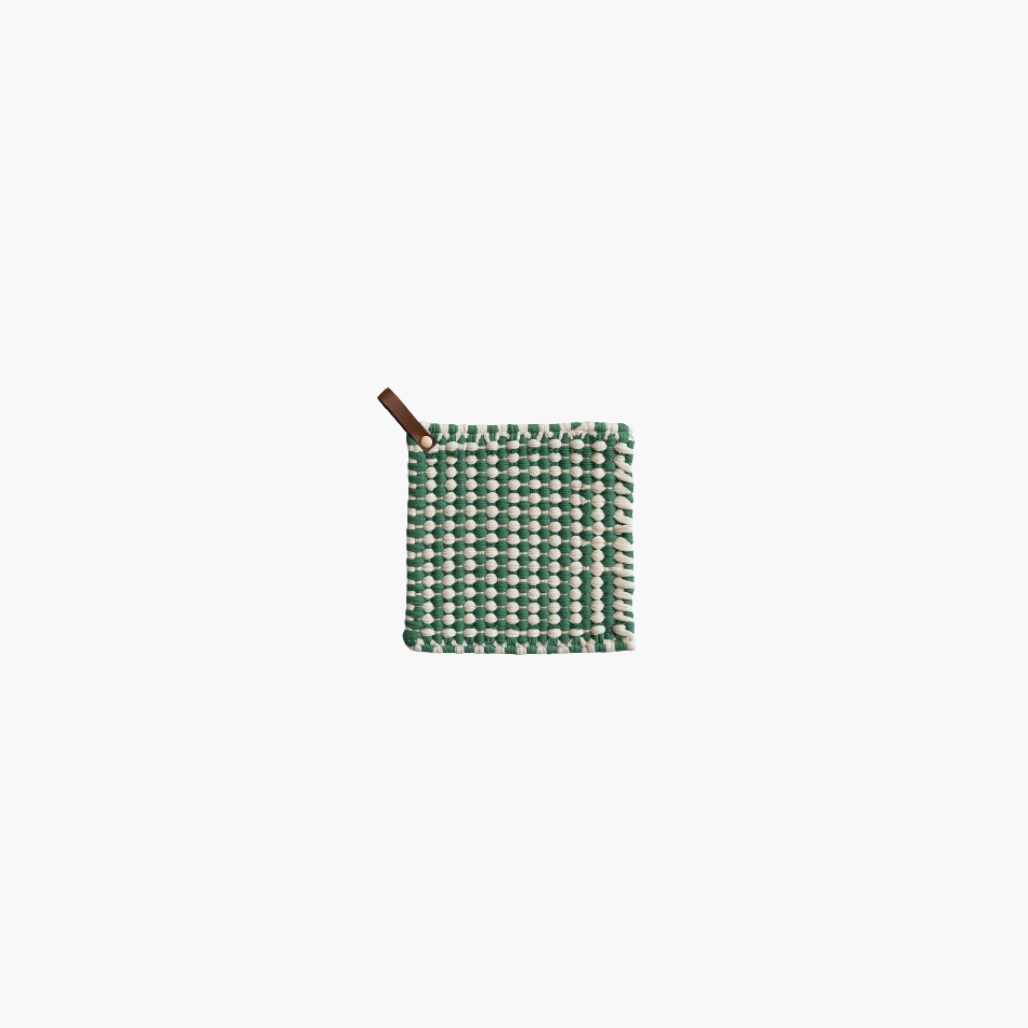 This charming crocheted cotton pot holder comes in merry Christmas colors and features a handy leather loop for hanging. Choose from four fun patterns: Red Stripe, Red Spots, Green Stripe, or Green Spots. Each design is sold individually to mix and match your holiday kitchen style!