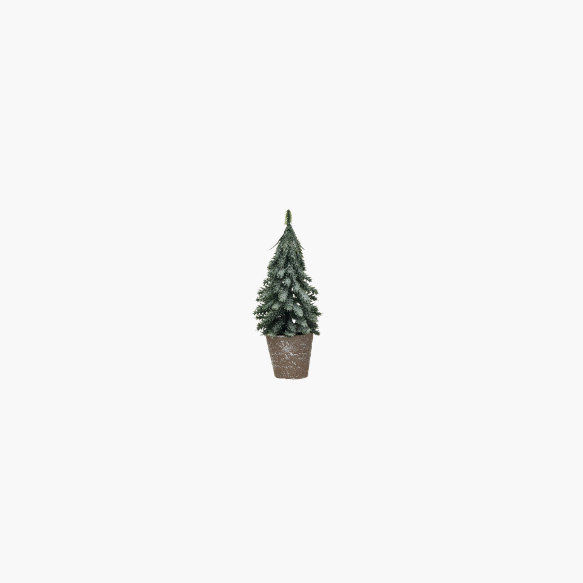 Bring winter wonderland vibes to your space with this charming faux evergreen tree! Featuring a frosted, snow-kissed finish that captures the magic of a freshly fallen snowstorm, it's the perfect way to add festive flair without the mess. Choose from four distinct styles to match your décor personality—each sold individually so you can mix and match or go all-in on your favorite. Nestled in a rustic paper pot, it's ready to brighten any corner of your home.