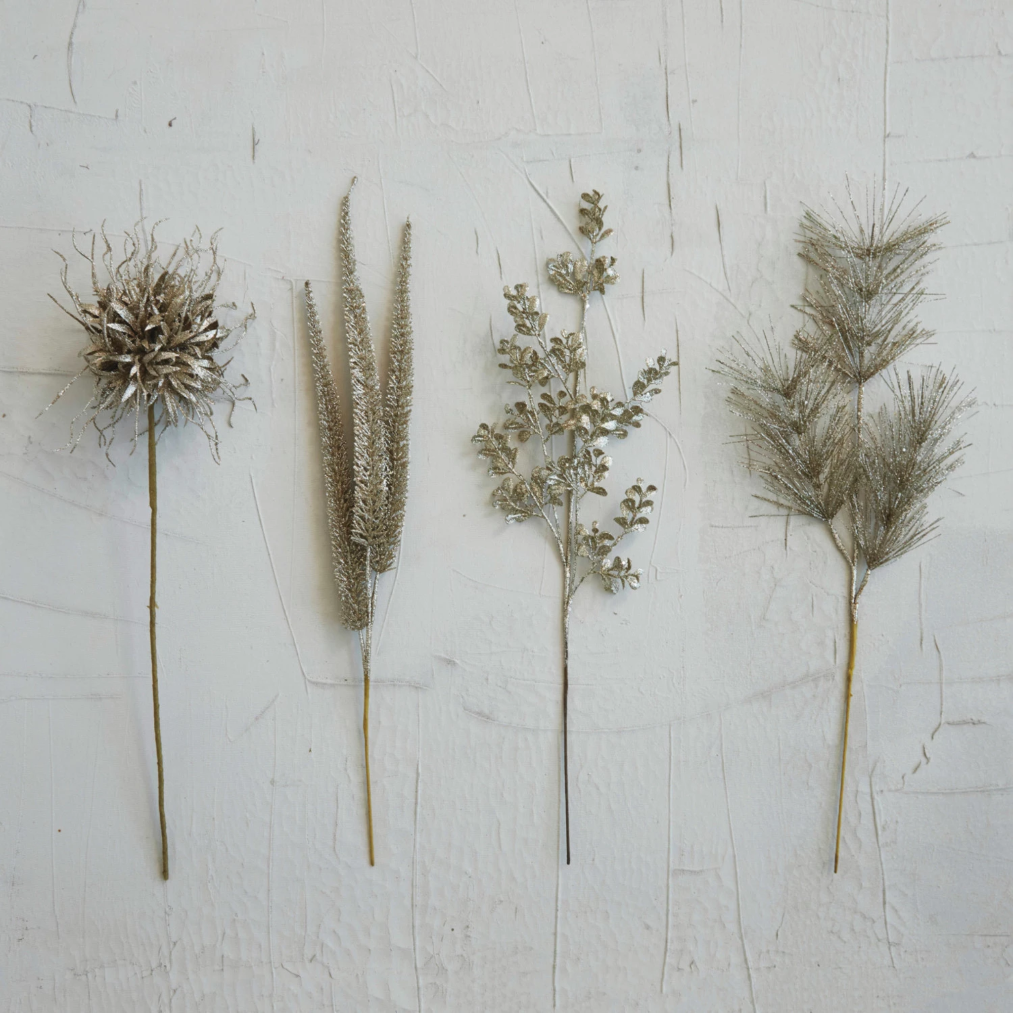 Bring some sparkle to your space with this pewter faux pick! Featuring glitter accents and a sleek metallic finish, it's the perfect touch for mantels, shelves, or tables. Made from durable polyethylene and metal, this 25.5-inch beauty is easy to clean and maintain. A festive, sophisticated accent that adds instant shine to any room.