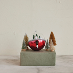 Shake up your holiday décor with this whimsical snow globe ornament featuring a cheerful gnome nestled among sparkling glitter. Standing 4 inches tall with a 3-1/4-inch round glass dome, this charming piece combines the nostalgic appeal of a jingle bell with interactive snow globe fun. The festive multi-color design and metal accents make it a delightful addition to any tree or shelf. Perfect for spreading seasonal cheer!