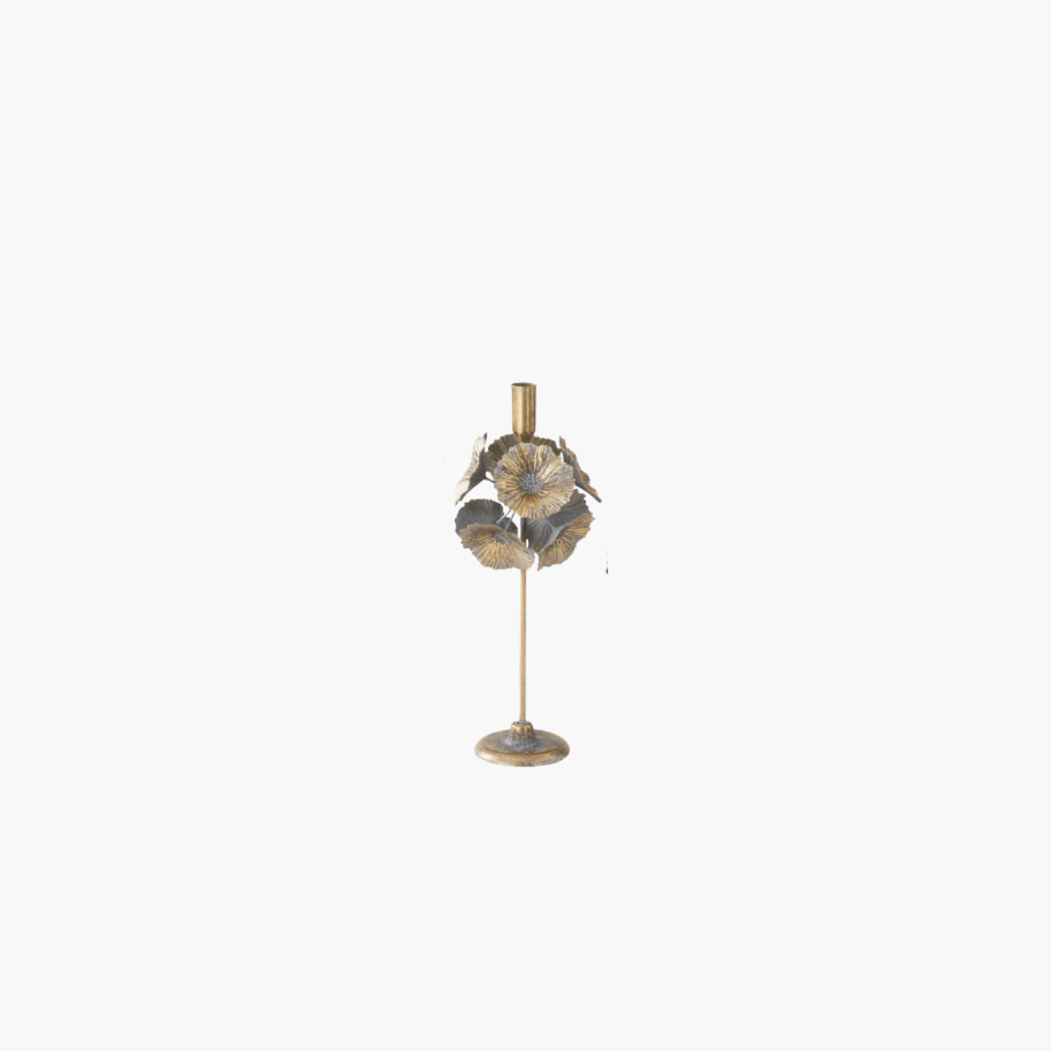 Gold w/White & Black Speckle Metal Lotus Leaf Taper Candleholders available in three sizes-Sm (11.75"), Med (14") and Lg ( 15.75"). Each size sold separately.