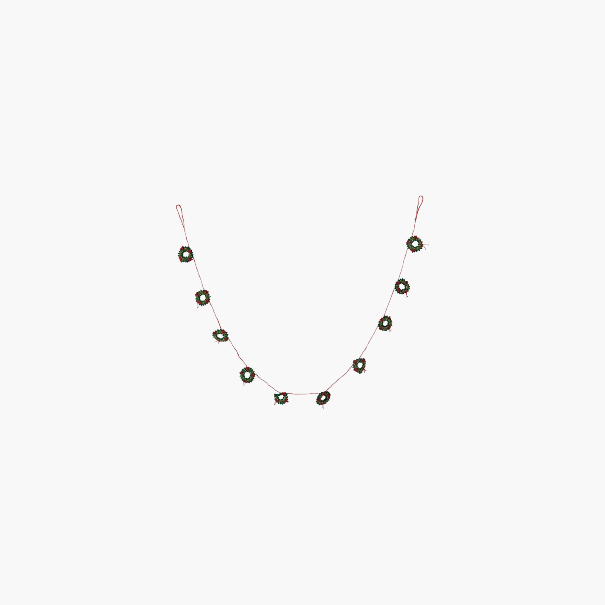 Handmade wool felt wreaths strung together in a burst of holiday colors. This 72-inch garland features charming glass embellishments that catch the light, perfect for draping along mantels, doorways, or banisters. At just 3.5 inches tall, it adds festive flair without overwhelming your space. Pure handcrafted holiday magic.