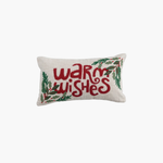 Lumbar Pillow with Appliqued Holly & Embroidery "Warm Wishes"