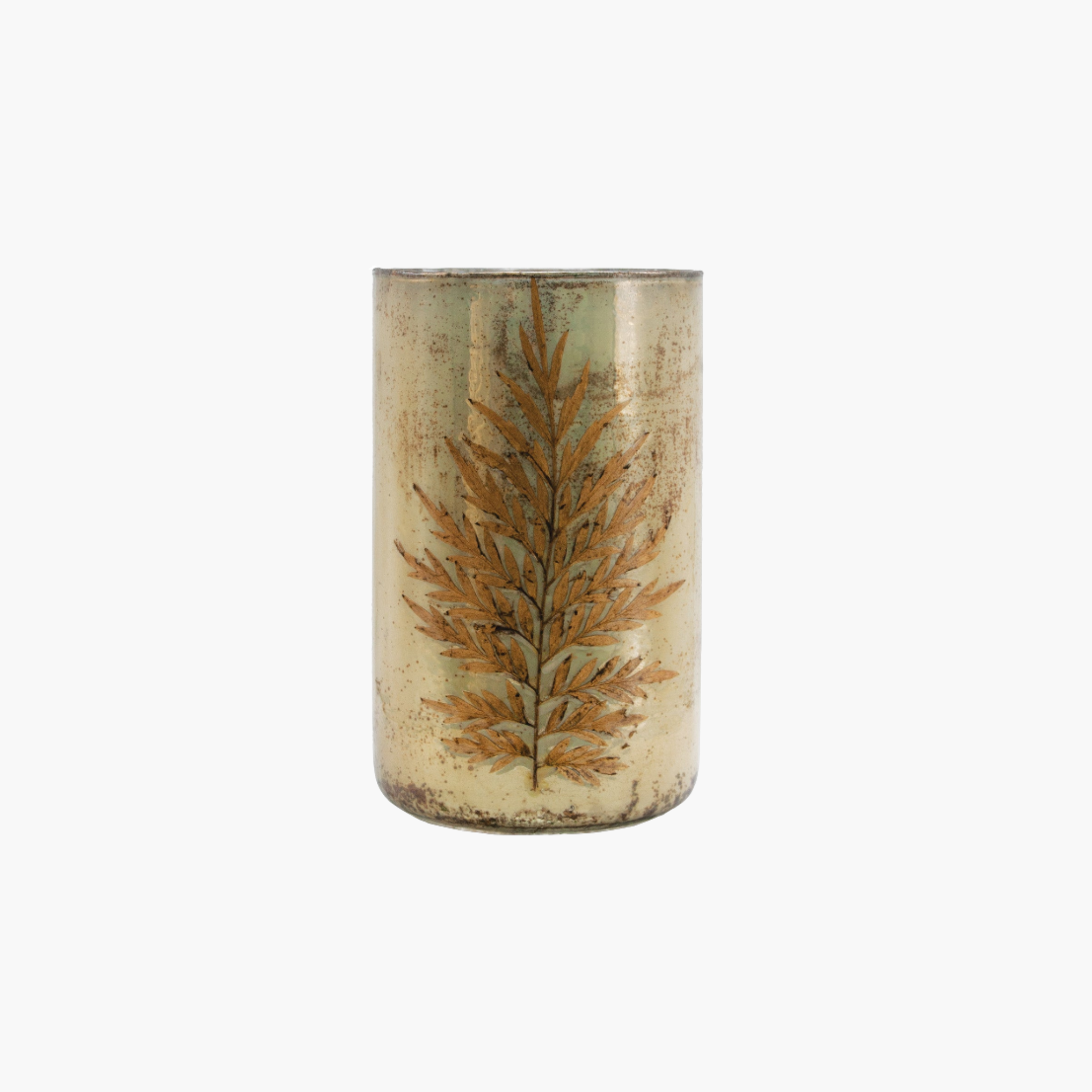 Bring a touch of woodland whimsy to your space with this enchanting mercury glass vase. Delicate silver oak leaves are suspended within the shimmering glass, creating an ever-changing play of light and reflection. Perfect for displaying fresh blooms or standing alone as a conversation-starting centerpiece, this piece captures nature's elegance with a modern twist. The lustrous mercury finish adds vintage charm while the embedded foliage brings organic beauty indoors. This beautiful vase stands 6" round and 10" high.