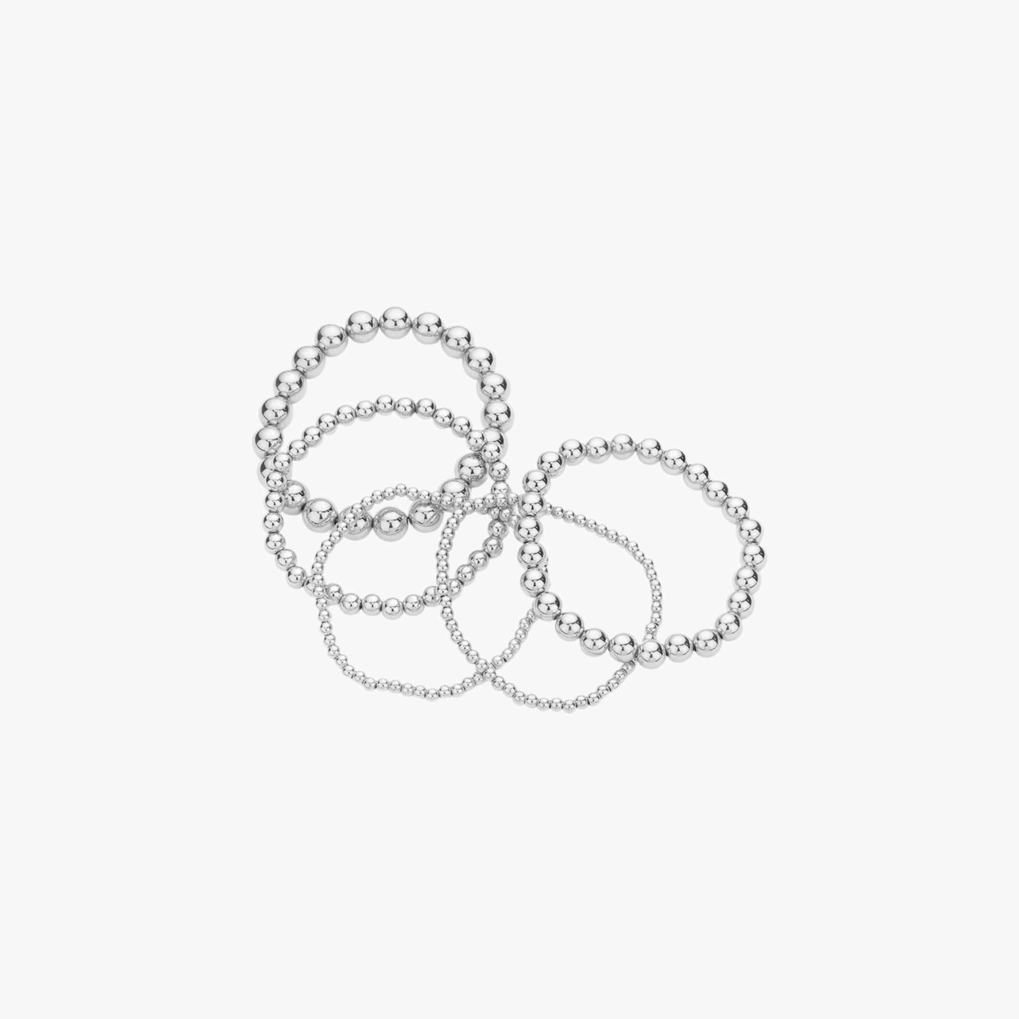 Get playful with this set of 5 Metal Ball Beaded Stretch Bracelets! Choose from three fun color options—Worn Silver, Worn Silver + Gold, or Silver. Each colorway is sold separately for mixing and matching your perfect stack.