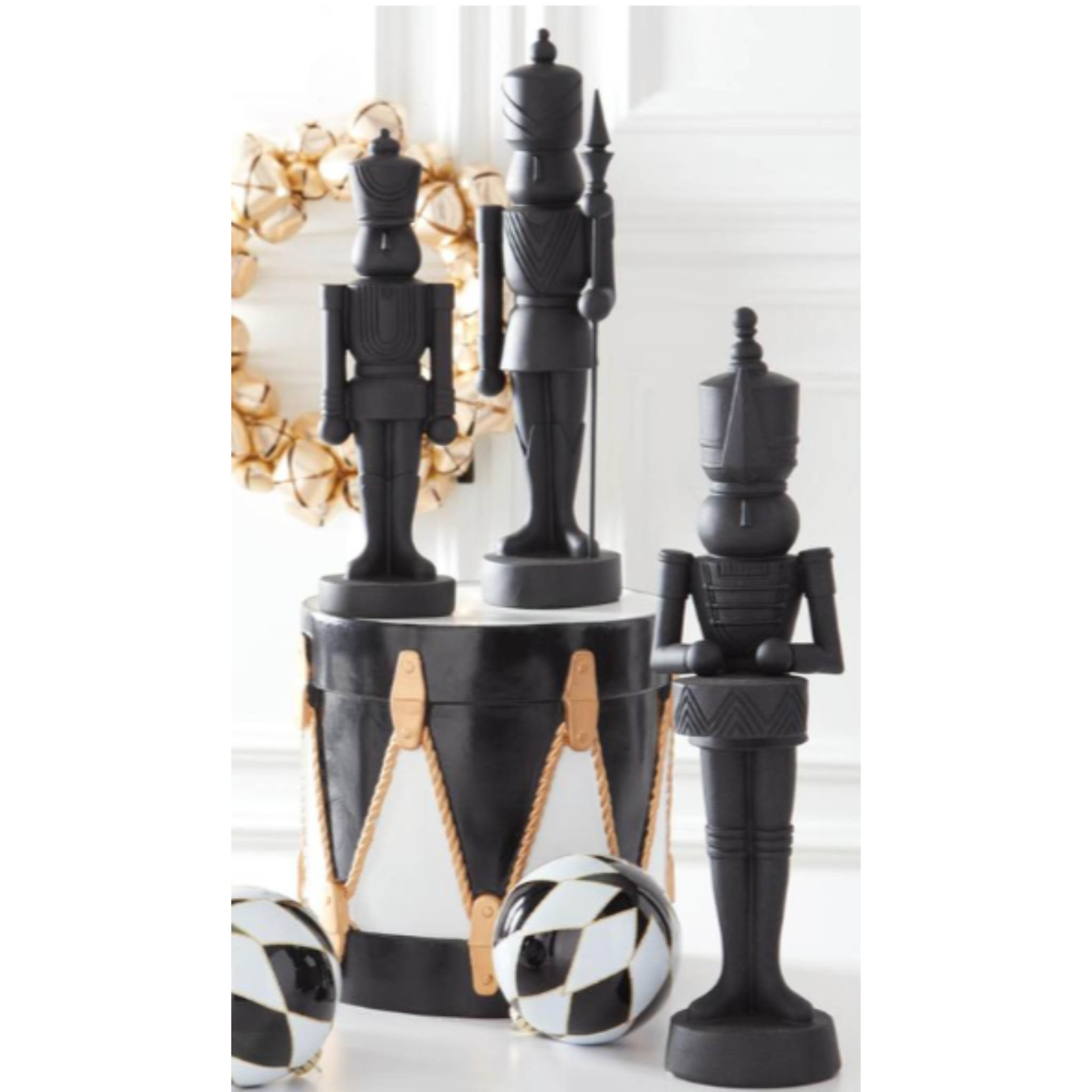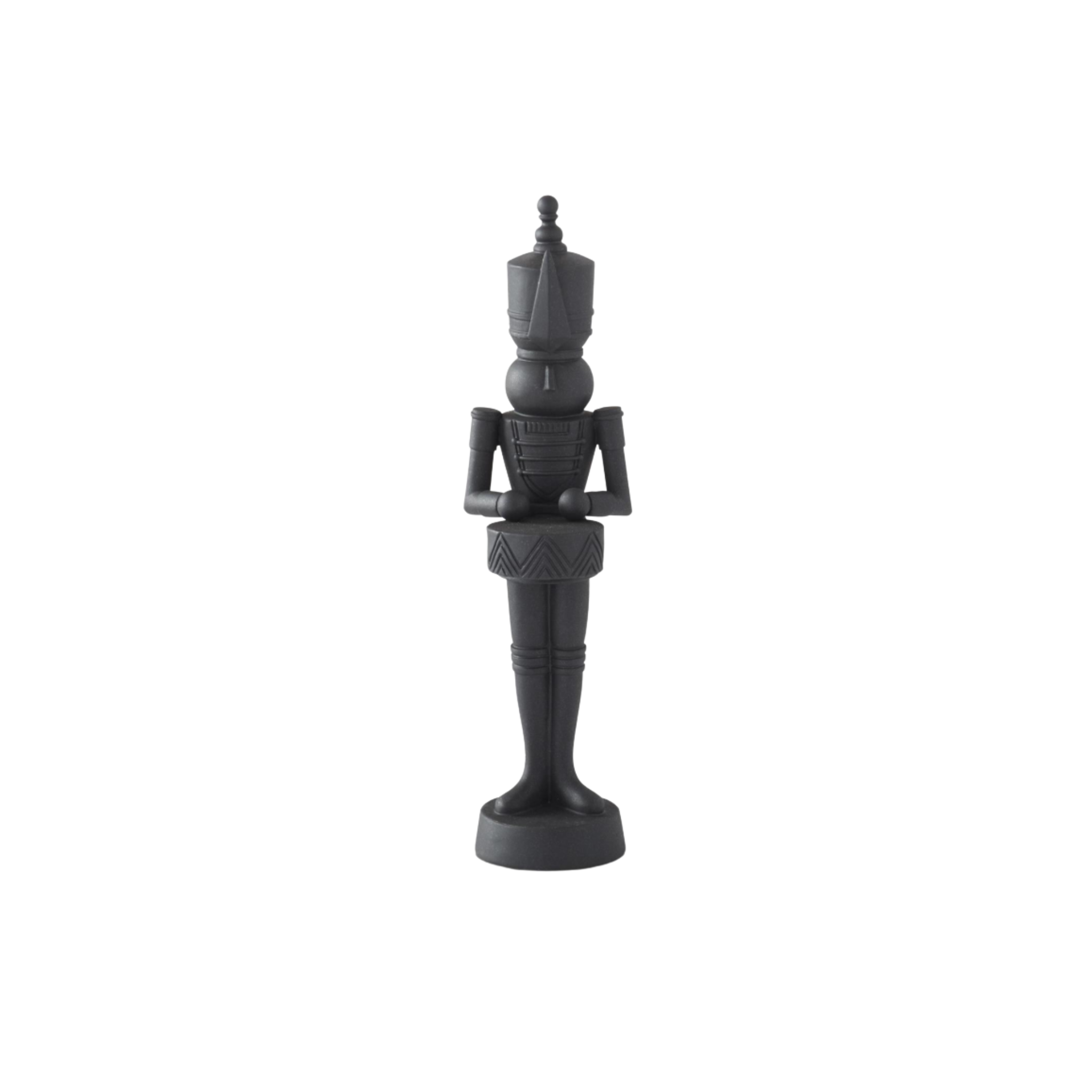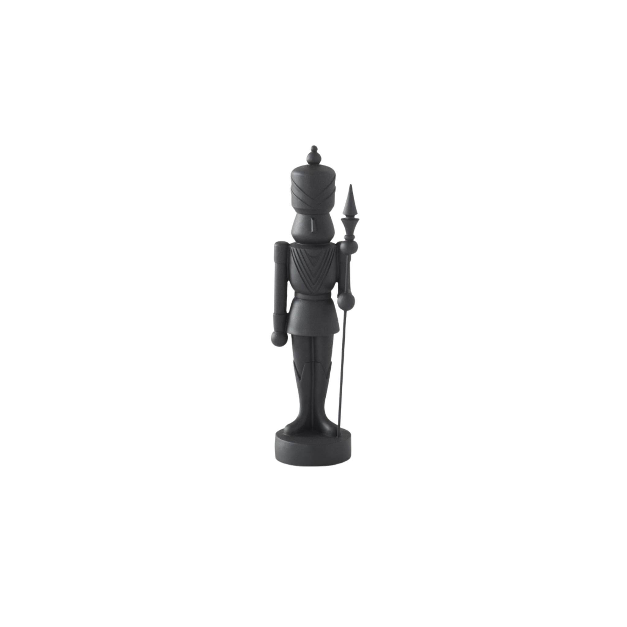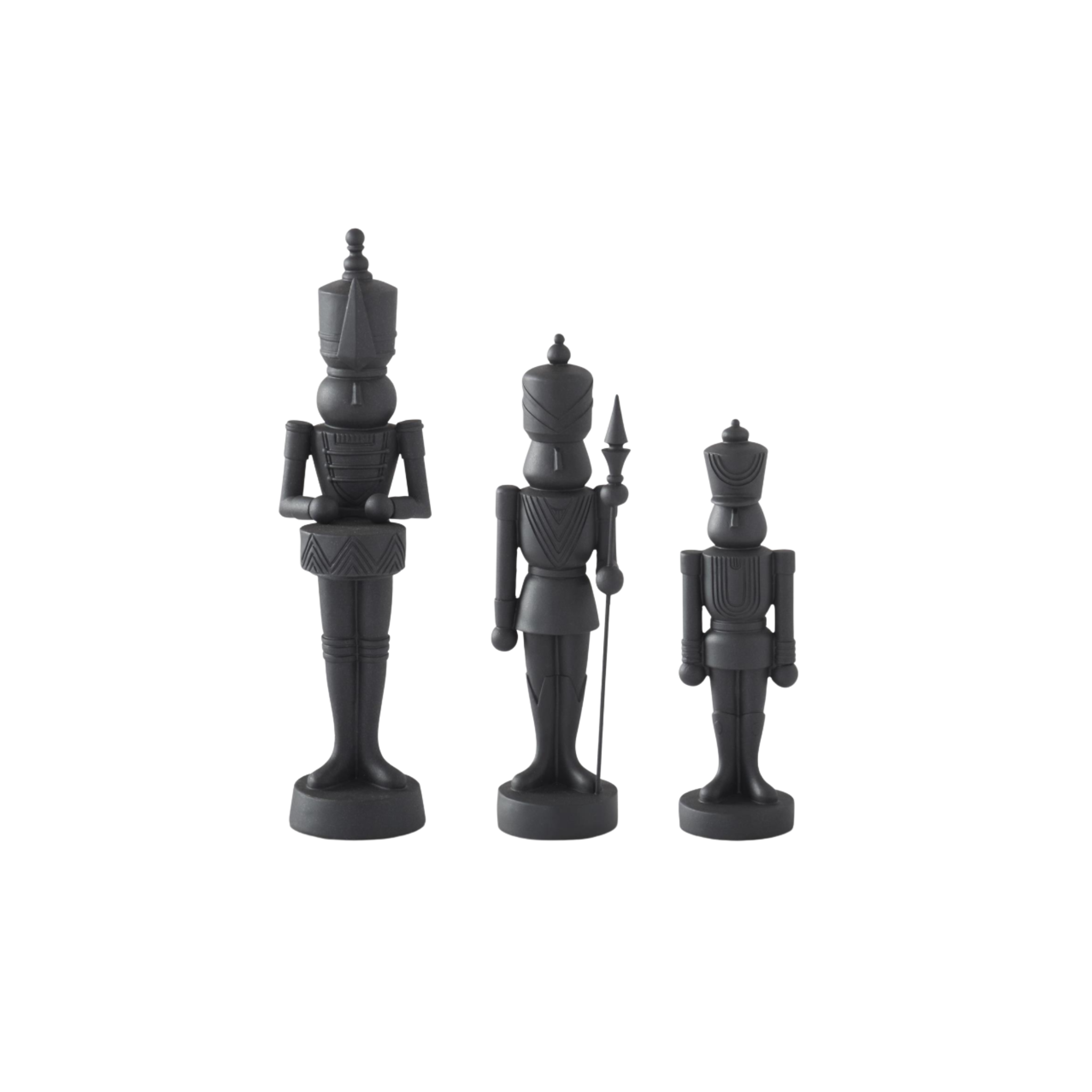 Available in three sizes—Small: 12.25"H x 3.5"W x 3.5"D, Medium: 15"H x 4"W x 3.5"D, and Large: 18.25"H x 4.5"W x 5.5"D—these Matte Black Nutcrackers bring a fun, bold touch to any space. Pick your favorite size or mix and match; each is sold separately for your Christmas display!