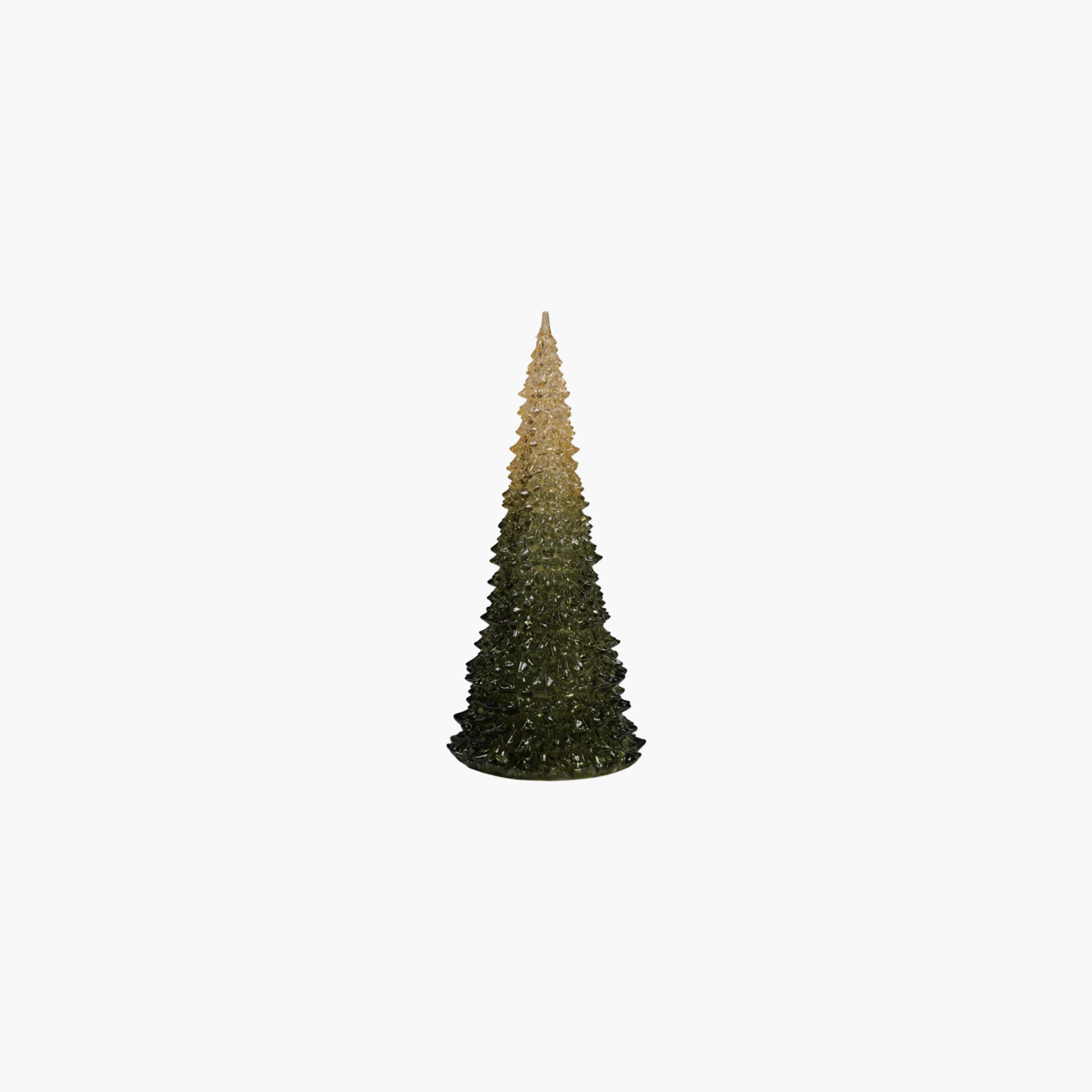 This charming 7" round by 15-1/2" tall plastic Christmas tree features glowing LED lights and a festive green ombre finish. It’s battery-powered (3 AA batteries needed) to brighten up your holiday decor with a playful touch.