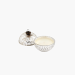 This Silver Balsam & Cedar Mercury Ornament Candle blends cozy oak moss, spicy cinnamon, and fresh eucalyptus for a timeless holiday vibe. Measuring 3.0 x 2.1 inches, it offers about 32 hours of festive glow.