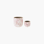This charming duo brings botanical flair to any space! Crafted from sturdy stoneware, these two planters feature a delightful red and white floral transferware design that adds instant character to your décor. The larger planter measures 6-3/4" round by 6-1/4" tall and accommodates a 4" pot, while the smaller companion sits at 4-3/4" round by 3-3/4" tall, perfect for a 3" pot. Mix, match, and display them together or scatter them throughout your home for a coordinated botanical touch.