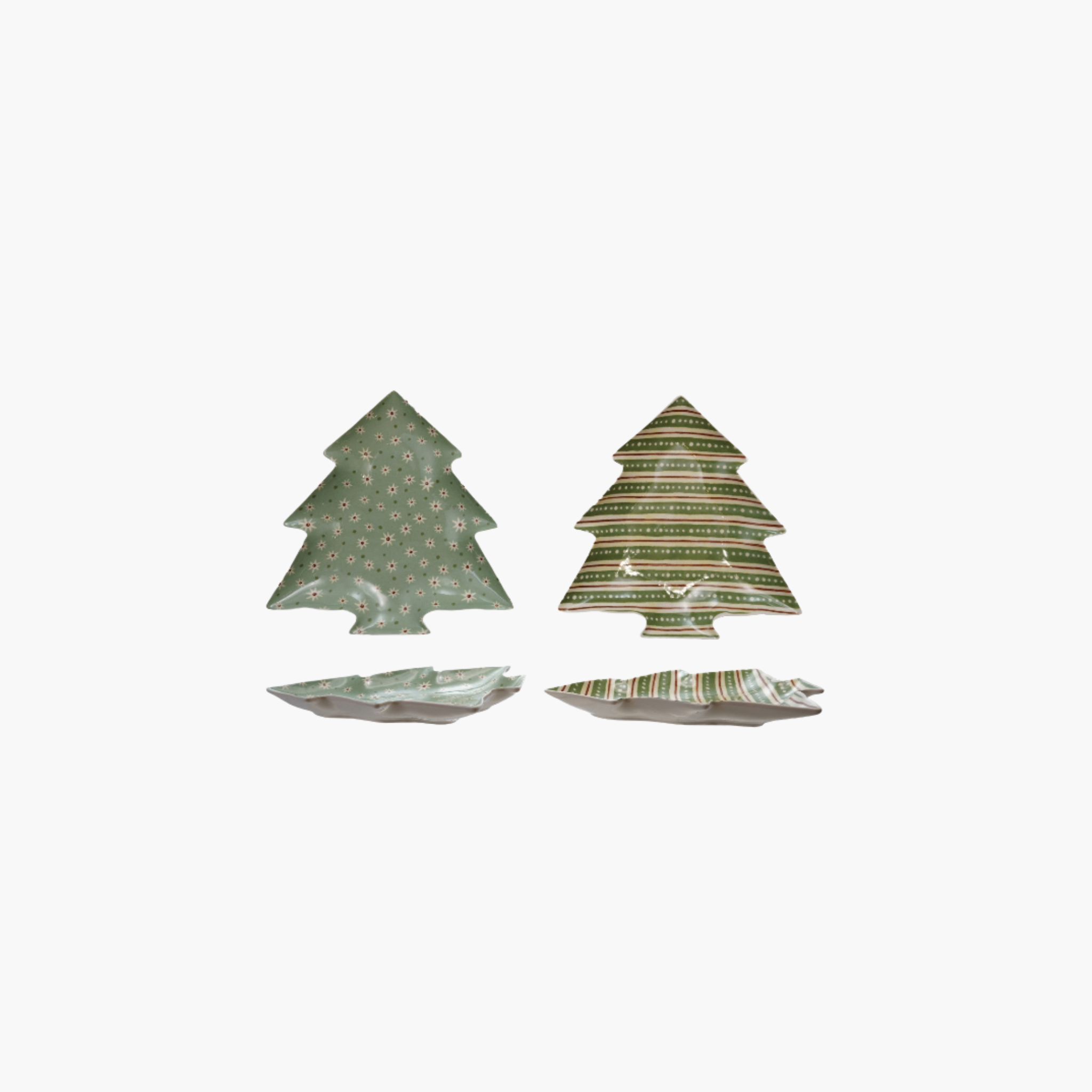 Stoneware Tree Shaped Plate with Holiday Pattern, 2 Styles ©