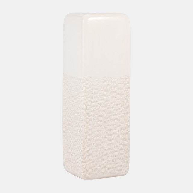 Add a touch of whimsy to your home with our Vase Square Creamy. This unique squared and grooved vase in a creamy ivory hue is perfect for showcasing your favorite flowers or for use as a standalone piece. Fun and functional, it's sure to be a conversation starter!