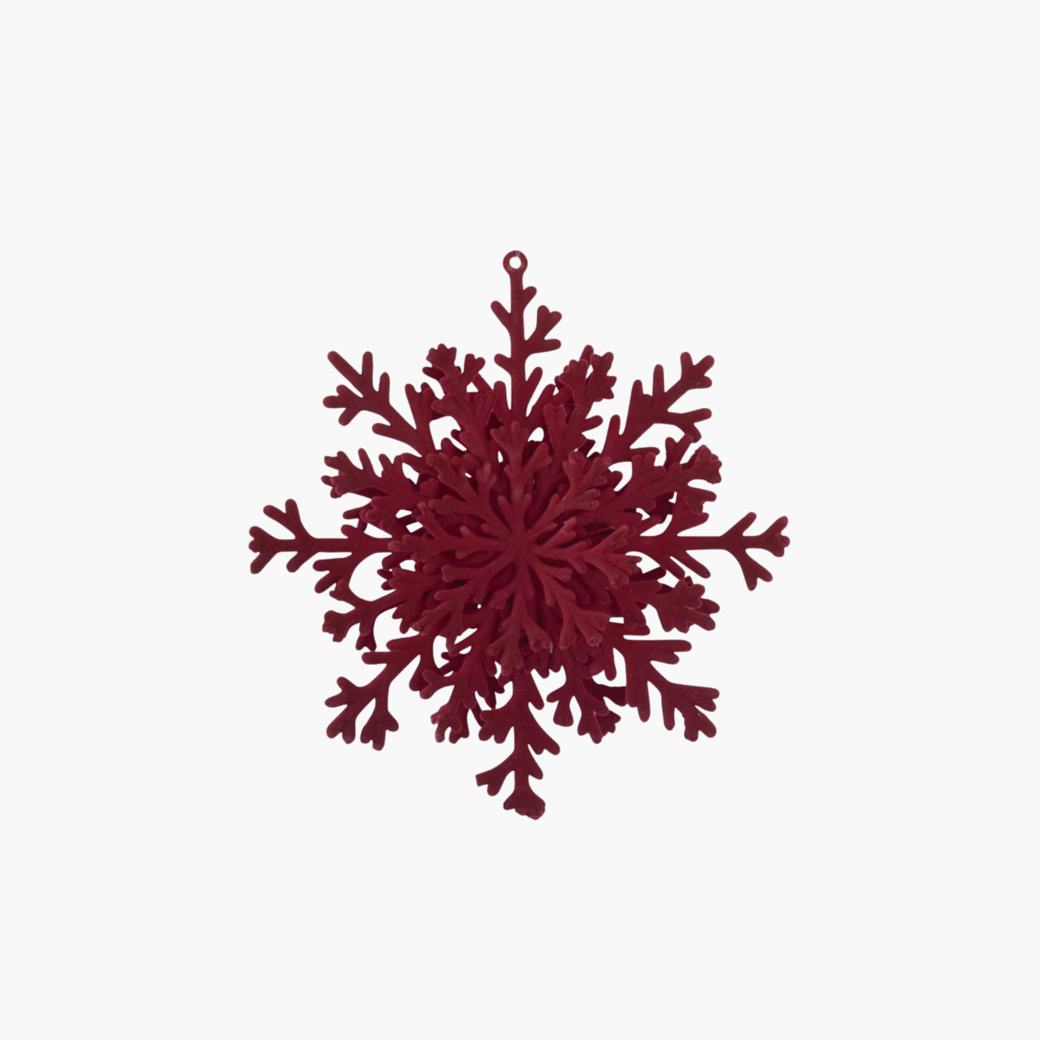 This charming 9.25-inch burgundy velvet ornament features a delightful 3-D snowflake design with a soft flocked finish, perfect for adding a cozy, festive touch to your holiday decor.
