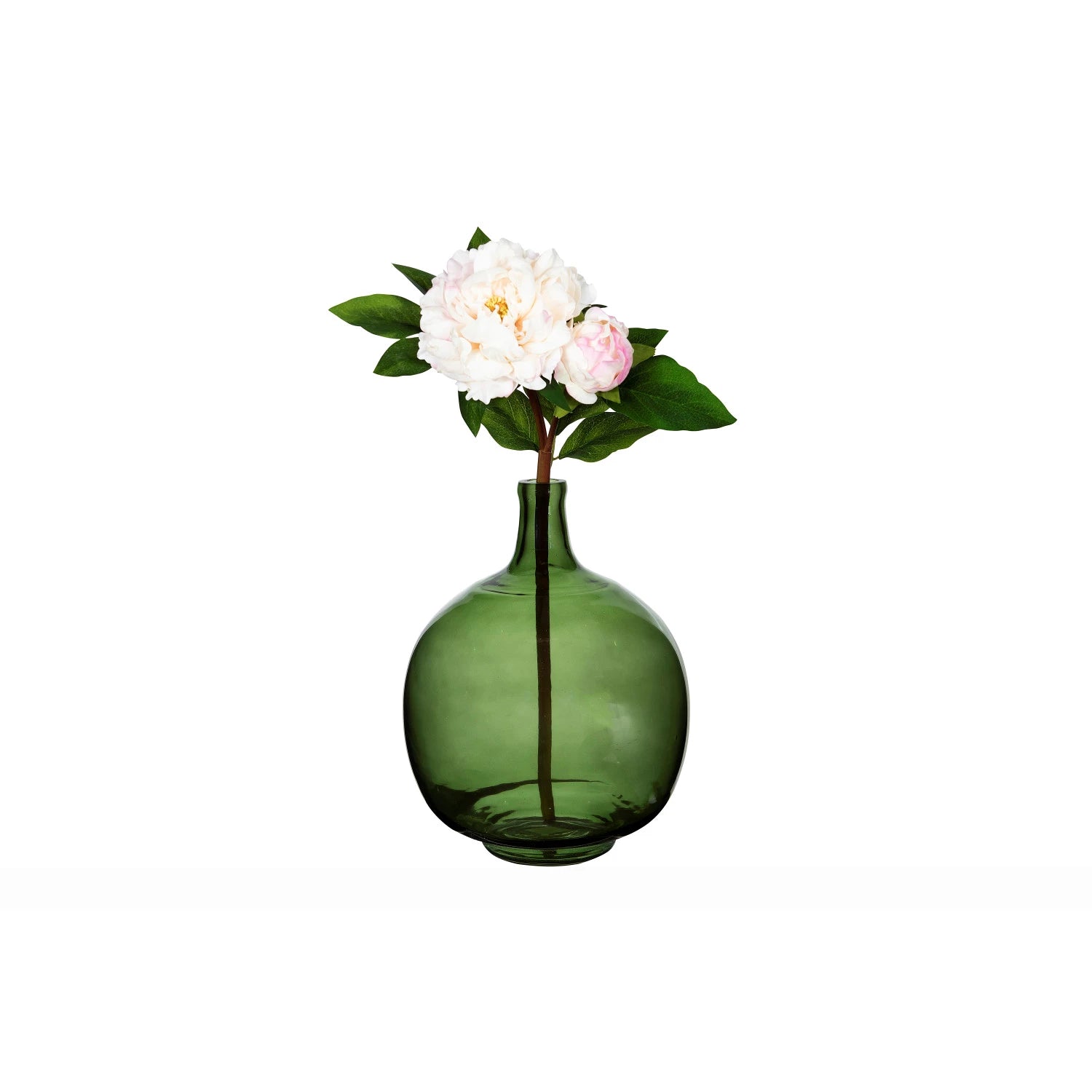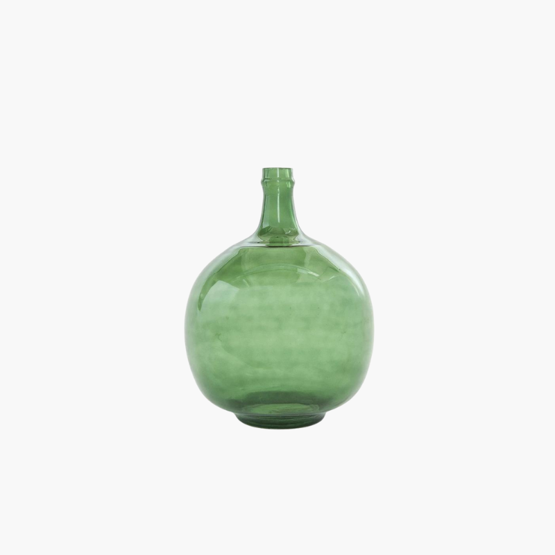 Transform any shelf or tabletop with this stunning Vintage Green Glass Bottle. Add a touch of color and dimension to your decor with the option to fill it with dried botanicals or vibrant pebbles. The transparent glass allows for a unique and eye-catching display